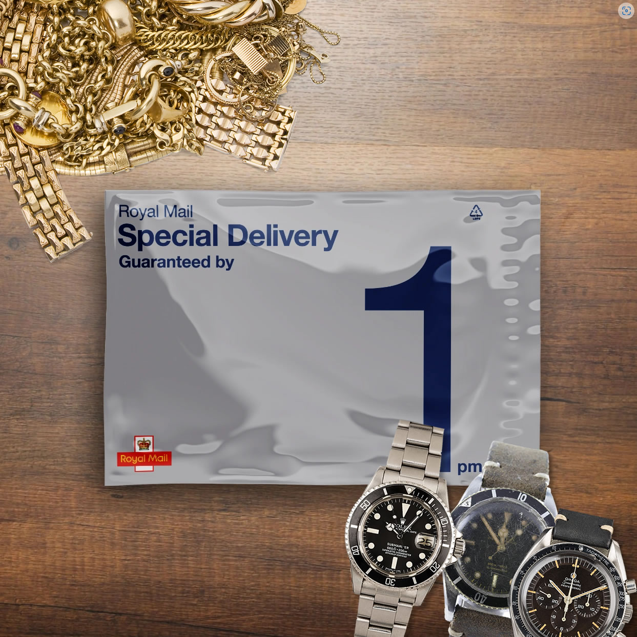 Please click below to request a prepaid Special Delivery insured pack for you to send in your items directly to us for a no obligation offer.